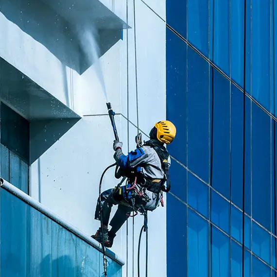 Rope access offers a far more adaptable solution. Technicians use specialist harnesses and rope systems to safely descend building façades, allowing for precise, efficient work—even in densely populated areas.